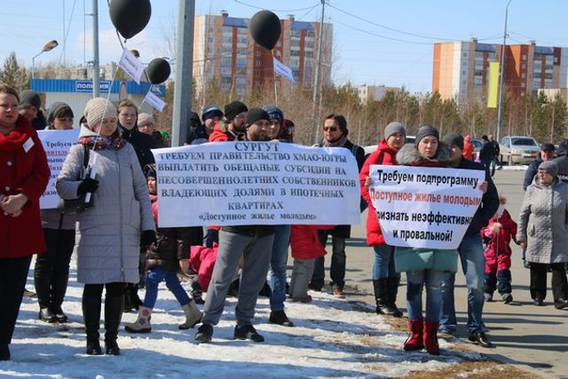В Сургуте и Нижневартовске местные жители вышли на митинги, требуя продолжения финансирования окружной программы «Доступное жилье молодым». Напомним, документ предполагает выплату единовременной субсидии молодым семьям (супруги при этом не должны быть старше 35 лет). Деньги предназначены на приобретение жилья или компенсацию процентных ставок по ипотеке. По данным «Муксун.фм», в 2015 году на программу было выделено около 3 млрд рублей, в 2018 году — всего 109 млн. При этом в очереди на участие в ней стоят десятки тысяч человек.