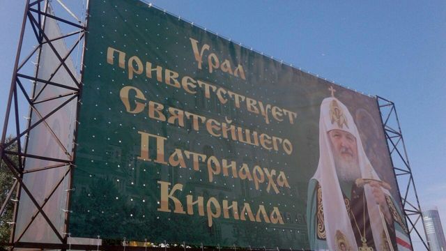 На улицах Екатеринбурга и в других городах Свердловской области появились рекламные конструкции с приветствием патриарху Московскому и Всея Руси Кириллу, который примет участие в фестивале "Царские дни".