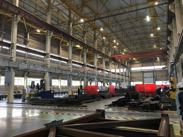 Производственный корпус ПСК состоит из двух блоков общей площадью 16 тыс. кв. м. Он оснащен станочным парком от ведущих производителей из России, США, Турции и Китая. В его арсенале – 20 станков: ленточно-пильные, кромко-фрезерные, профиле-гибочные, гильотины, установка термической резки, комбинированные пресс-ножницы, дробеметная установка. Среди них 4-валковый гидравлический гибочный станок 4R HSS, предназначенный для вальцовки обечаек (открытых цилиндрических или конических элементов конструкции) и конусов разного диаметра, стан PHJ 15 для производства двутаровой балки методом сварки.
