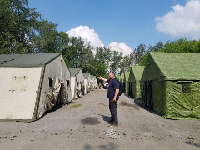 Район охраняют наряды полиции и казаки. Городок, который должен вместить 3 тыс. человек, расположился на территории зеленой зоны между кинотеатром «Космос» и Дворцом игровых видов спорта. В нем есть медпункт, палатки, камеры хранения, комната матери и ребенка.