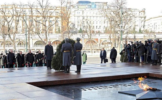 В церемонии приняли также участие премьер-министр РФ Дмитрий Медведев, спикеры Совета Федерации и Госдумы Валентина Матвиенко и Вячеслав Володин, министр обороны Сергей Шойгу. Цветы к Могиле Неизвестного Солдата вместе с главой государства возложили члены правительства, государственные и политические деятели, представители ветеранских организаций.