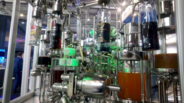 Немецкая компания Gemu креативно подошла к оформлению своего стенда на международной промышленной выставке «Иннопром» в Екатеринбурге. Для того, чтобы объяснить посетителям, чем они занимаются, мастера компании собрали робота-бармена, который весь день угощал посетителей коктейлями с виски и ромом. Завтра они надеются угостить президента России Владимира Путина, который прилетит в столицу Урала.