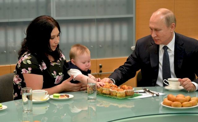 «Крепко Вова Сыропятов схватил рукой кекс, когда оказался на чаепитии с президентом. И пока Путин пытался расспросить у его мамы, как многодетная семья обустроилась в новом доме, мальчик второй рукой тянулся к еще одному пирожному. Президент, заметив это, сам покормил ребенка из своих рук: "Кусай! Понравилось? Конечно, понравилось!" - пишут федеральные журналисты.