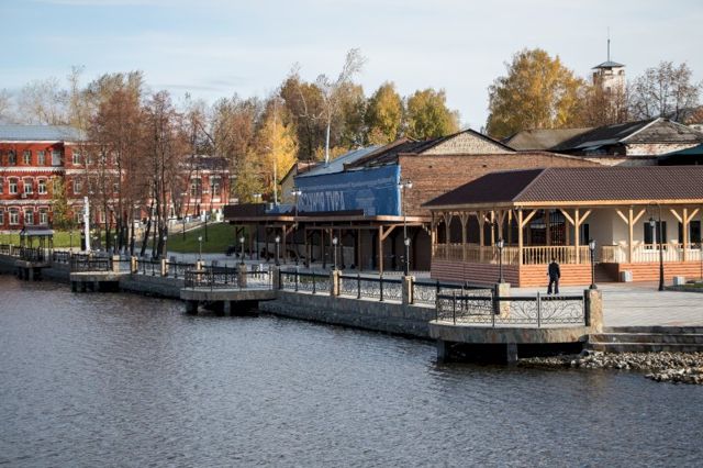 На этой фотографии Дмитрия Макеева - старая набережная Верхней Туры. Городок расположен в 50 км от Нижнего Тагила, ближайший сосед – Кушва. Тура возникла почти 300 лет назад при чугунно-литейном заводе. В дореволюционное время предприятие выпускало пушки, в советское – снаряды, авиабомбы и ракеты для знаменитых «Катюш».
