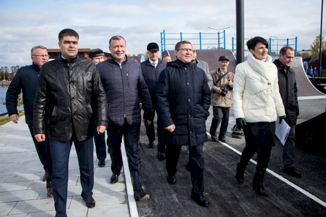 Якушев в сопровождении и.о. губернатора Алексея Орлова, свердловского министра энергетики и ЖКХ Николая Смирнова и глав муниципалитетов очень быстро прошел по новой набережной и остался доволен.