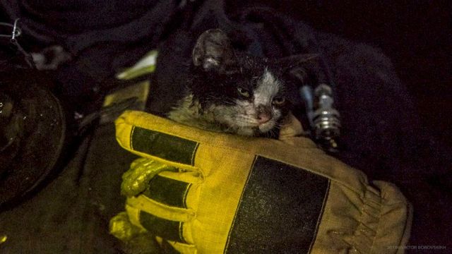 В одной из пожарных частей Новосибирска поселился кот, спасенный во время пожара. Он ловит мышей, ездит с бойцами части на заправку. Животное назвали Гидрантом, и теперь он стал талисманом подразделения.