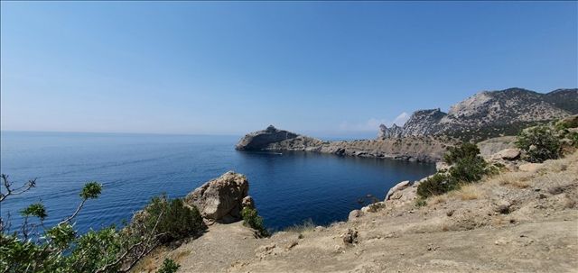 После стоянки на море дикарями мы заехали в Новый Свет, прогулялись по тропе Голицына. Экскурсоводы, зазывалы на кораблики и катание на бананах всех мастей — все на местах. Не знаю, сколько здесь было туристов в 2019 году и раньше, но сейчас были периоды минут на 5-10, чтобы остаться одним на тропе. После нас ждал уже номер в Алуште с прекрасным видом и едва долетающим с променада звуком вечернего аккордеона.