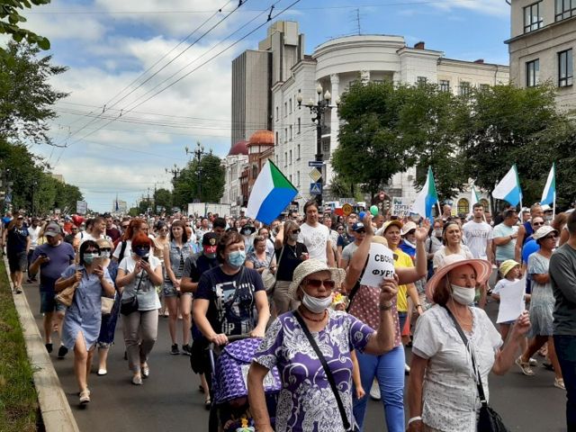 Сегодня митинги и шествия прошли в Хабаровске (где прошла уже 15-я акция), Комсомольске-на-Амуре, Владивостоке и Южно-Сахалинске.