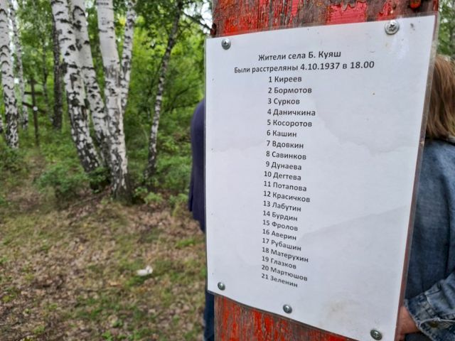 Списки постоянно дополняются благодаря исследователям истории Большого террора. Правозащитник Татьяна Щур недавно тоже установила на Золотой горе символическую могилу в память о расстрелянном дедушке.