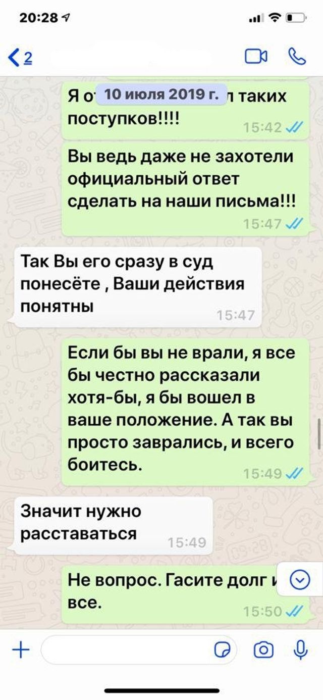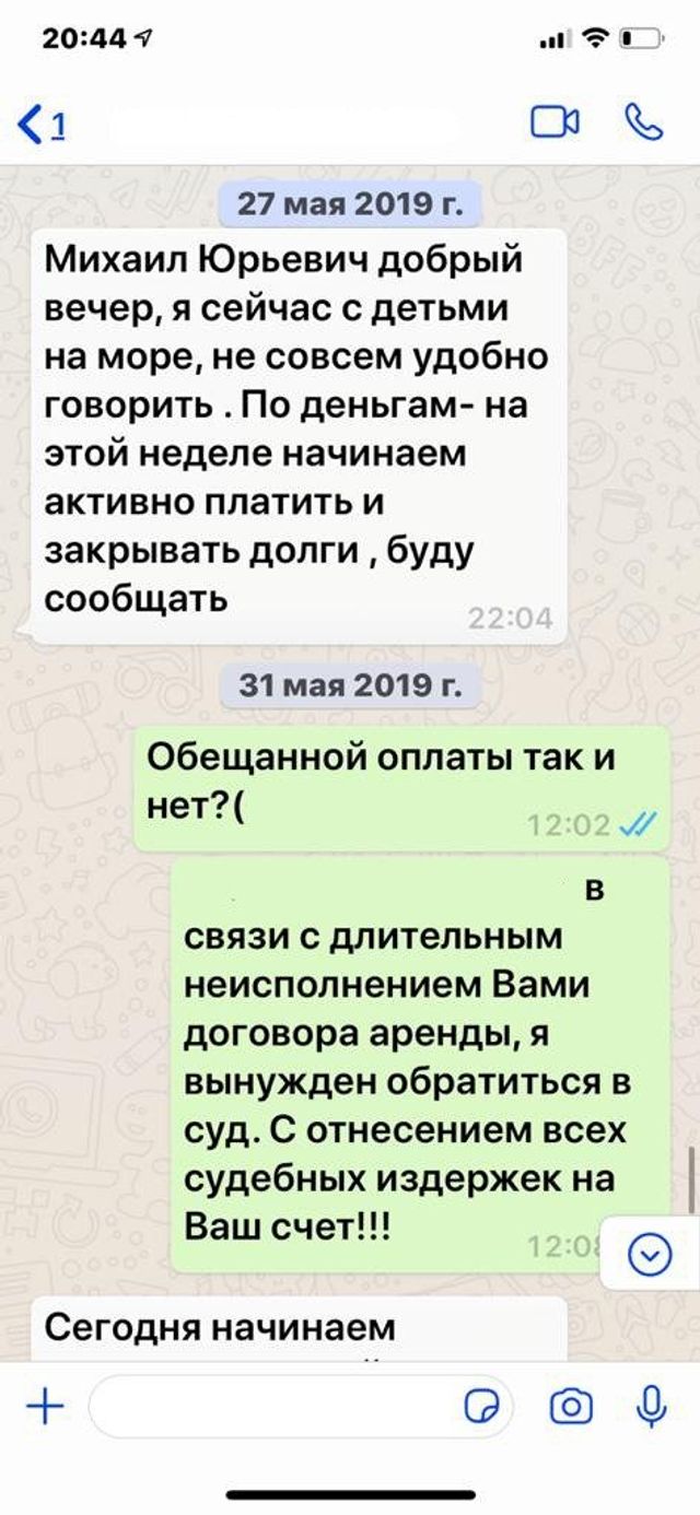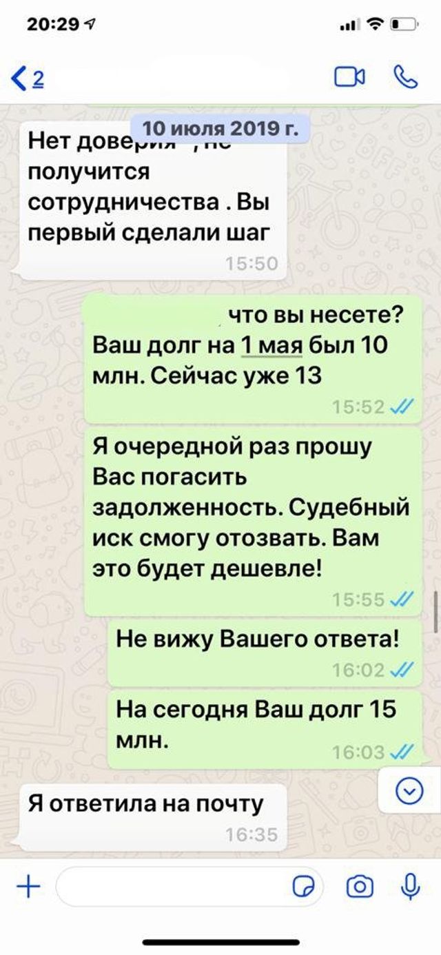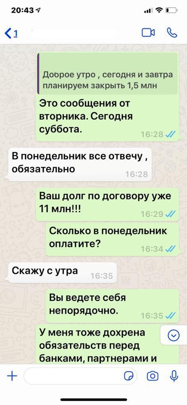- Это был вынужденный шаг. С начала 2018 года они стали регулярно нарушать свои обязательства, накапливая долг. Подчеркну еще раз: коронавируса и никаких связанных с ним проблем тогда и в помине не было. При этом в итоге мне перестали даже обещать «исправиться»: «Отстань», «Нам не до тебя», «У нас свои проблемы».