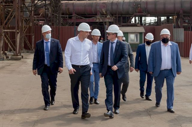 Губернатор Оренбургской области Денис Паслер и генеральный директор Уральской горно-металлургической компании Андрей Козицын сегодня посетили Медногорский медно-серный комбинат (входит в УГМК).