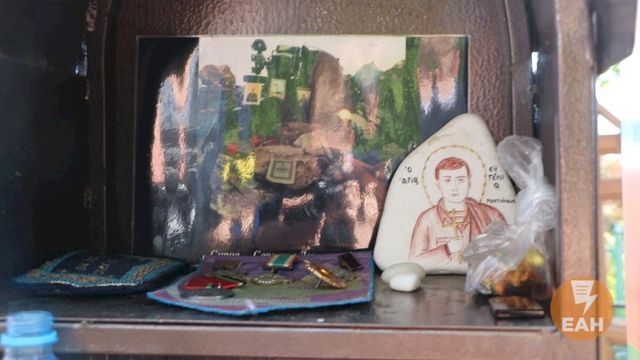 Паломник с военной выправкой Александр раздает на могиле Родионова его фото и иконки с ним. Очень помогает в делах, особенно армейских, уверяет Александр. Он отставной контрактник, ветеран обеих «чеченских» и верит в силу святого воина Евгения давно.
