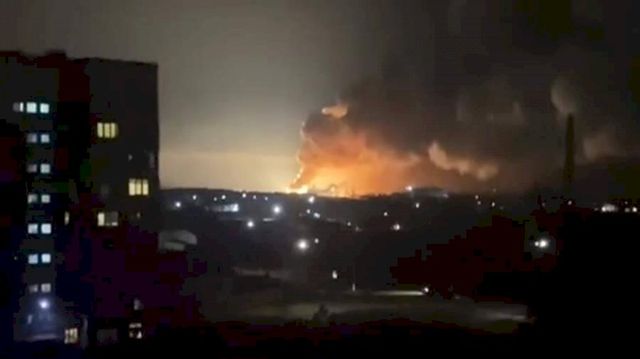 Дороги Киева забиты, тысячи машин пытаются покинуть город. В Харькове многие жители, напуганные взрывами на военной базе возле города, спустились в метро.