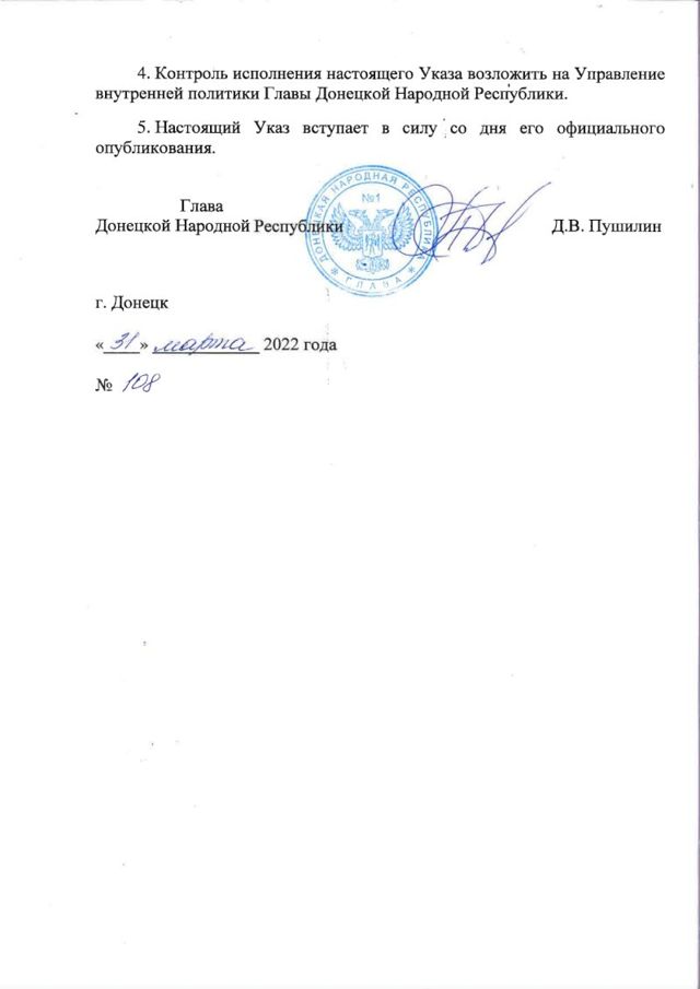 «Постановляю создать местную администрацию Донецкой народной республики - администрацию города Мариуполя», - говорится в тексте указа главы ДНР Дениса Пушилина Администрация Мариуполя создается «в целях обеспечения законности и порядка, нормальной жизнедеятельности, а также функционирования предприятий, учреждений, организаций и иных объектов на территории освобожденных населенных пунктов, ранее временно находившихся под контролем Украины».
