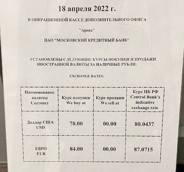 Выяснилось, что наличная валюта есть только в Московском кредитном банке (ранее приобрел екатеринбургский банк «Кольцо Урала») на 8 Марта, 49. По словам сотрудников, перед покупкой нужно уточнить сумму, которая имеется в кассе. При этом на распечатке у кассы банка курсы продажи валюты не были обозначены.