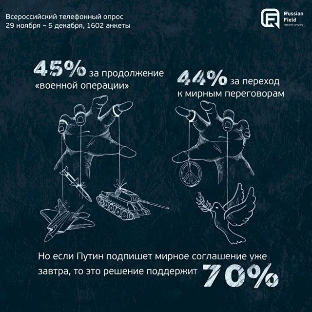 Больше 50 % опрошенных россиян выступают за мирные переговоры между Россией и Украиной29 октября 2022 в 18:32