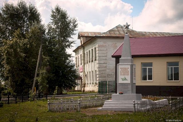 Стела с надписью «Вечная слава героям, павшим за власть Советов» была открыта в 1967 году, в год 50-летия Советской власти, на братской могиле участников Гражданской войны. На этом месте похоронены 93 красноармейца, которые в 1918 году попали в плен к колчаковцам и были убиты.