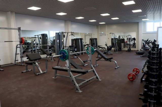 Площадь спорткомплекса – 2 тыс. кв. м. Там ежедневно смогут заниматься 588 человек. На первом этаже ФОК находятся спортивный зал, раздевалки, тренерские, медпункт, на втором – фитнес-зал, тренажерный зал, раздевалки, комната уборочного инвентаря. Одновременно в спортзале смогут заниматься 22 человека, в зале общей физподготовки – 27 человек.