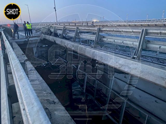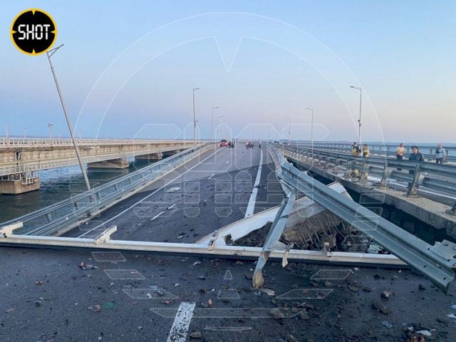 Национальный антитеррористический комитет сообщил, что атака на Крымский мост совершена двумя украинскими беспилотными надводными аппаратами. Глава парламента Крыма Владимир Константинов заявил, что «Крымский мост атаковал террористический режим Киева».