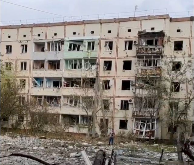 Удар был нанесен по спальному микрорайону Сокол, где нет военных объектов. Сильные повреждения получили три пятиэтажных жилых дома: на улице Горького, 24, улице Горького, 26 и улице Довженко, 13. При этом погиб один житель дома, еще 12 госпитализированы с осколочными ранениями.