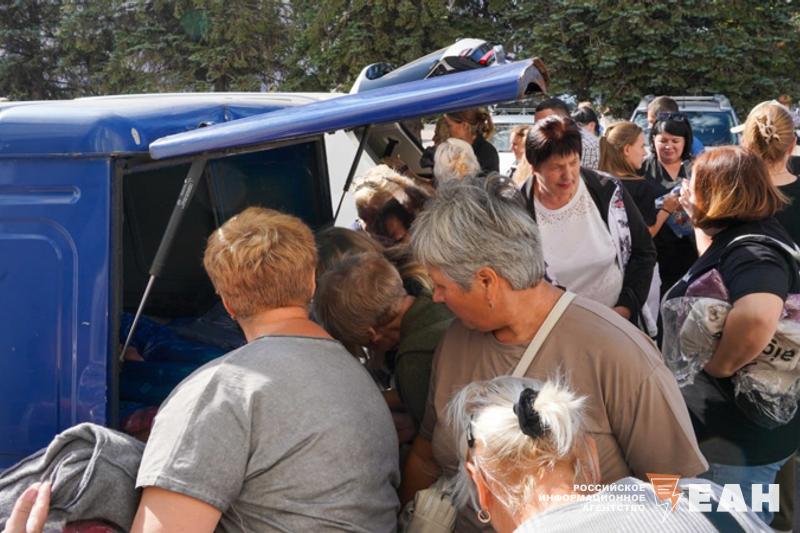 Было запланировано в течение трех дней посещение пунктов временного размещения (ПВР) беженцев. Причем первая точка была не в ПВР, а прямо на улице, на парковке у драмтеатра. Туда пришла многочисленная группа беженцев, которая разместилась в центральном районе города. Преимущественно это были люди из ныне оккупированного города Суджи и Суджанского района, а также из села Коренева и Кореневского района. Беженцы прямо из машин, как из автолавок, брали необходимые вещи, здесь же примеряли одежду. Волонтеры привезли теплые осенние и зимние вещи, а также средства гигиены, бытовую технику, детские принадлежности и обувь. Людям нужно всё, поскольку многие были вынуждены бежать из дома в чем были - в шортах, халатах и тапочках. Из имущества у них ничего нет, даже детские фотографии забрать не успели.