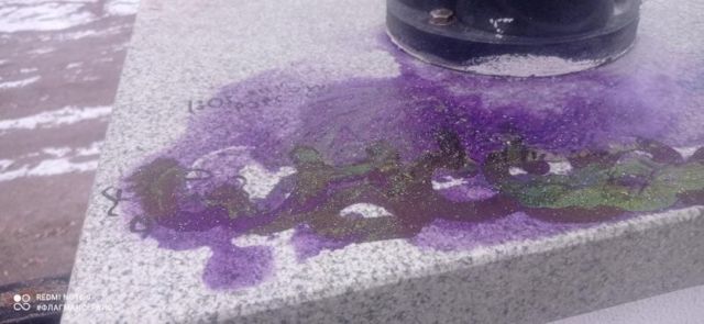 Вандалы использовали высококачественную краску. Поиски способа смыть надписи продолжается.