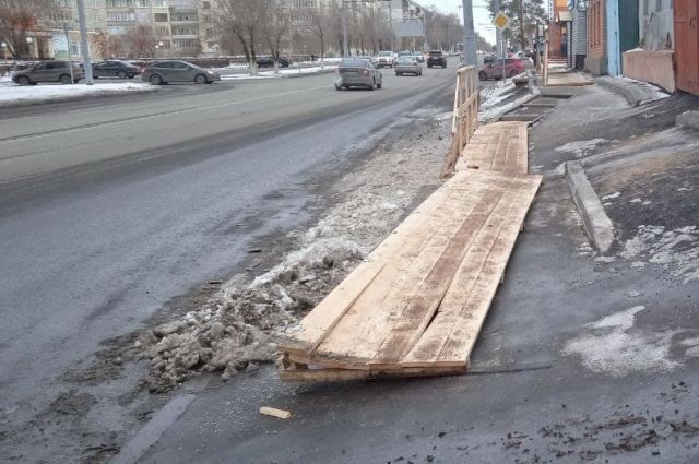 В мэрии пояснили, что деревянные настилы, которые были установлены на пешеходных дорожках с уклоном в сторону проезжей части, были временным решением. Специалисты управления строительства и дорожного хозяйства города выехали на место и осмотрели конструкции, после чего было принято решение убрать их и выровнять тротуар.