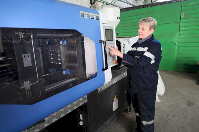 На предприятии проходят пробные запуски машины и отладка автоматики. По технологии в приемный бункер машины подаются готовые гранулы твердого пластика, которые попадают в модуль пластификации для расплава. Под высоким давлением расплавленное сырье впрыскивается в литьевые пресс-формы. Далее готовые изделия охлаждаются, твердеют в течение нескольких секунд и с помощью гидравлического механизма извлекаются из пресс-форм.