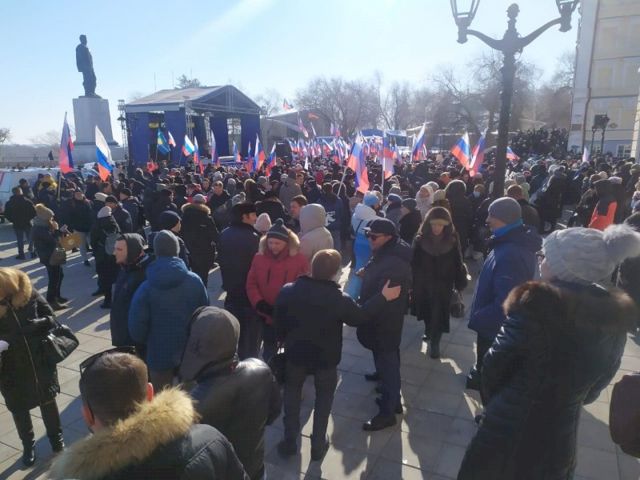 В Оренбурге возле памятника В.П. Чкалову на городском бульваре 18 марта прошел митинг-концерт в поддержку спецоперации на Украине. Мероприятие также приурочено к годовщине присоединения Крыма к России.