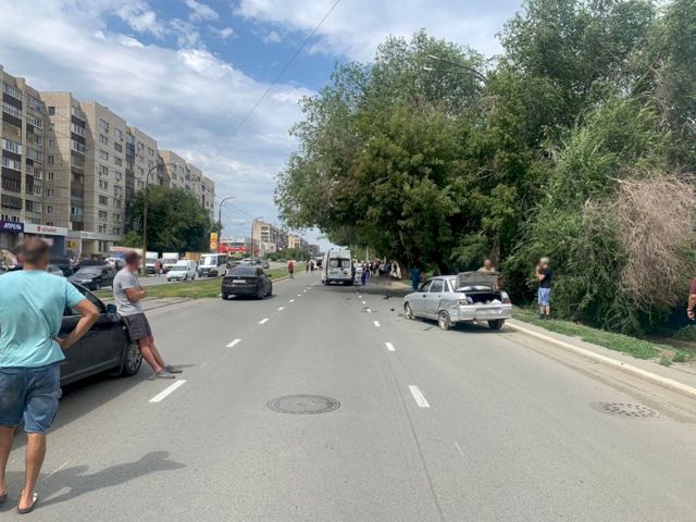Днем 20-летний студент Новотроицкого техникума на автомобиле ВАЗ-2114 при перестроении в крайний правый ряд наехал на двух мужчин. После этого ВАЗ-2114 столкнулся с попутной машиной. Затем из-за этого ДТП на этом же участке дороги столкнулись еще две машины, которые получили механические повреждения.