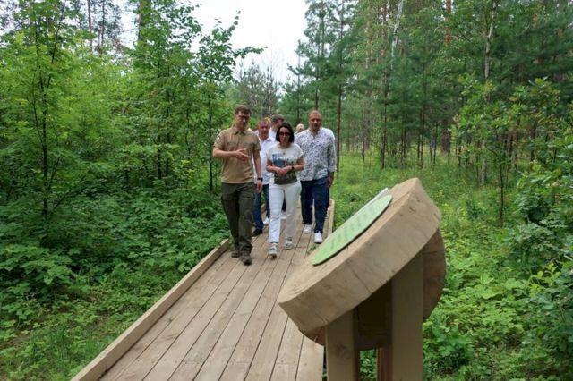 Первой по тропе прошлась вместе с руководством парка вице-губернатор Татьяна Савинова. Там можно увидеть смешанный, сосновый лес и черную ольху, которая растет только на болоте. После возвращения с маршрута туристы могут провести время на разных площадках – в детском игровом городке, специальной дорожке для прогулок босиком, деревянном лабиринте и скалодроме. Все это изготовлено из природных материалов.