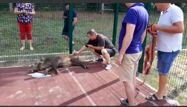 На выходных на спортивной площадке лицея №7 в Оренбурге был замечен дикий кабан. Его засняли очевидцы, видео появилось в социальных сетях. Сотрудники лицея позвонили в полицию и в городскую администрацию. На помощь пришли специалисты Центра льготной стерилизации.