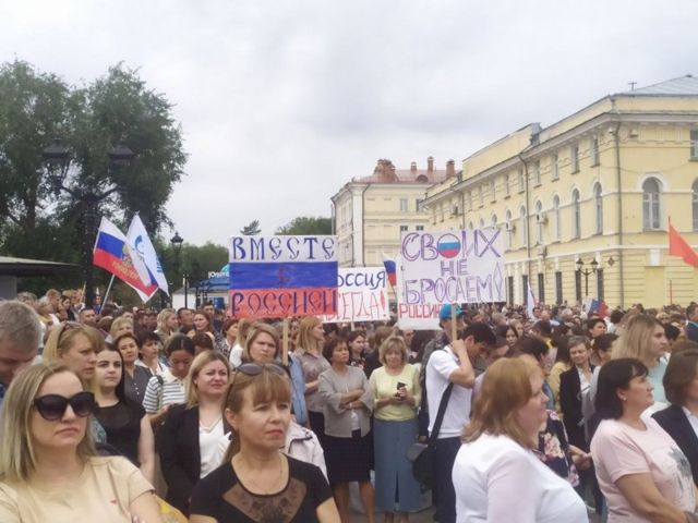 Митинг-концерт в поддержку решений о проведении референдумов прошел в Оренбурге. На площади около Музея истории города на набережной собрались сотни горожан.