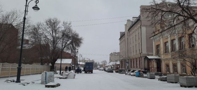 На участке улицы Пролетарской, проезд по которой еще закрыт, тоже ведутся круглосуточные работы. На углу улиц Пролетарской и Володарского идет ремонт Главного управления дорожного хозяйства Оренбургской области, которое является объектом культурного наследия - «Дом купчихи Е.В. Мазовой». Аукцион на капремонт и победители были объявлены в августе, а в ноябре историческое здание осталось без крыши. Там сейчас ведется работа.