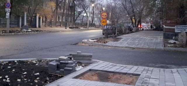 Практически круглосуточно работы шли и в переулке Матросском, там тоже в любую погоду укладывали асфальт и обустраивали бордюры. Вновь асфальт перекладывали на улице Правды, которая находится за Домом Советов, и на прилегающем участке улицы Кобозева рядом с цирком.