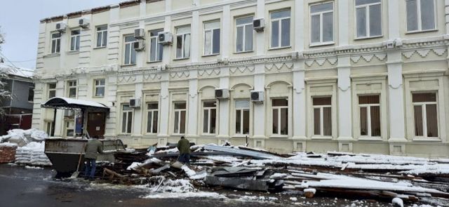В соседнем с областной библиотекой здании, которое также является объектом культурного наследия XIX века – Губернаторском многопрофильном лицее-интернате для одаренных детей, – также шел капремонт с частичной реконструкцией. В нем тоже, прямо в непогоду, рабочие доделывали последние дела.