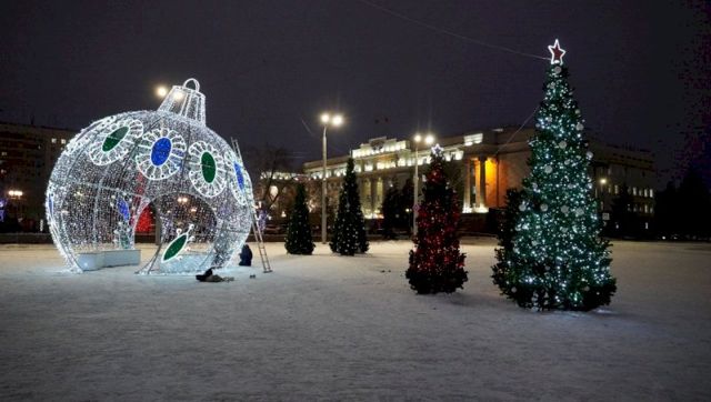 Как рассказали в администрации города, монтировать елки, гирлянды и горки начали еще в ноябре. На площади Ленина установили 54 елки, большую горку для катания на тюбингах, каток, иллюминацию, а также «Маркет еды».
