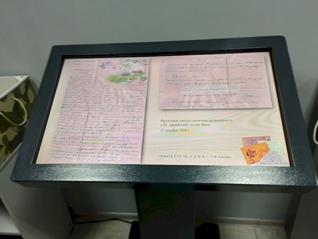 В экспозиции представлены фронтовые солдатские письма, воспоминания, фотографии, а также предметы, обнаруженные при зачистке блиндажа в ходе поисковой экспедиции в 2022 году в Суоярвском районе Республики Карелия.