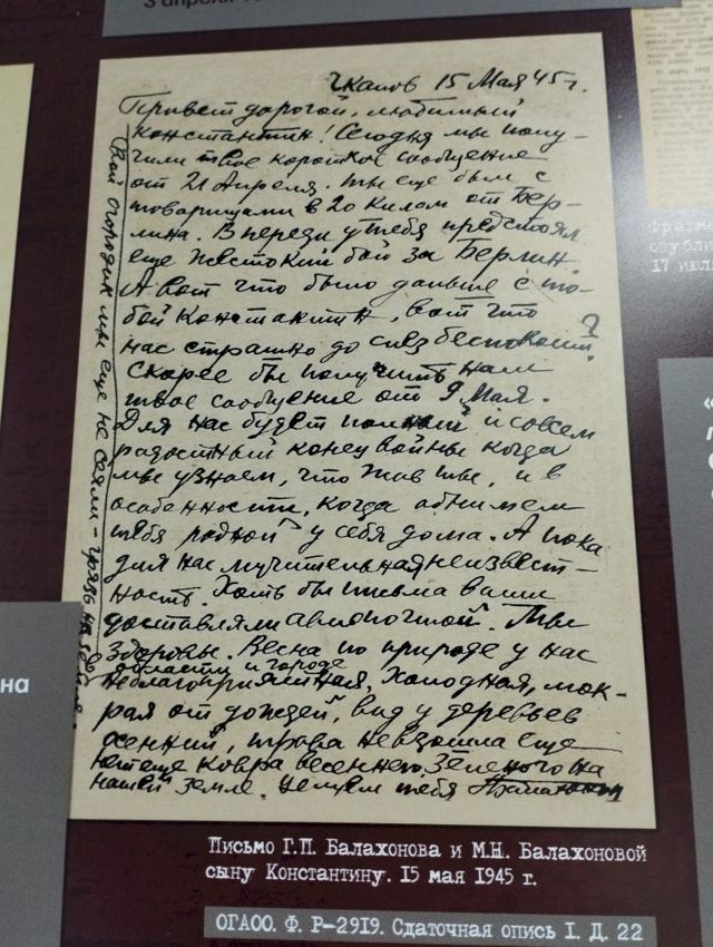 Архивисты проделали большую работу. На выставке в Оренбурге даже оказались работы участника Сталинградской битвы из Калининграда А.И. Глухова. В оренбургском архиве хранились его письма военного периода.