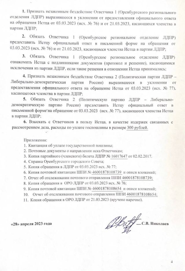 Николаев просит признать незаконным бездействие регионального отделения партии и показать ему подлинники документов. В иске он говорит, что информация об его исключении появилась в марте этого года. Но еще в ноябре 2022 года суд восстановил членство Сергея Николаева и еще пятерых активистов в партии.