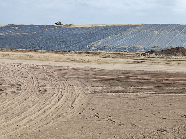 На свалке в Новотроицке уже сформировали пирамиду из мусора, насыпали на нее слой песка и смонтировали специальную газоотводную систему. Сейчас пирамиду укрывают специальной пленкой, поверх которой снова положат слой песка.