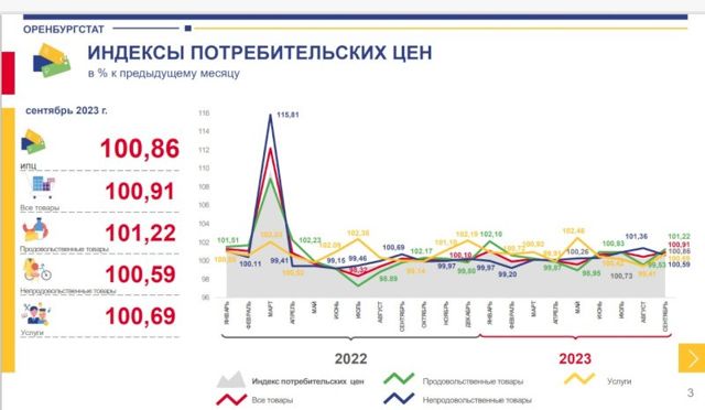 «Индекс потребительских цен по Оренбургской области в сентябре 2023 года к декабрю предыдущего года составил 104,1%, - пояснили в Оренстате. - Среди субъектов Приволжского федерального округа минимальное значение индекса потребительских цен отмечено в Мордовии (103,2%), максимальное – в Марий Эл (105,6%). Оренбургская область по этому показателю занимает 4 место».