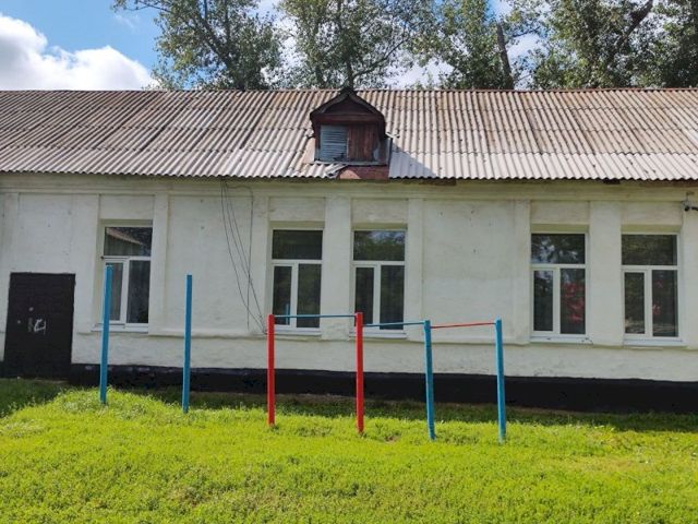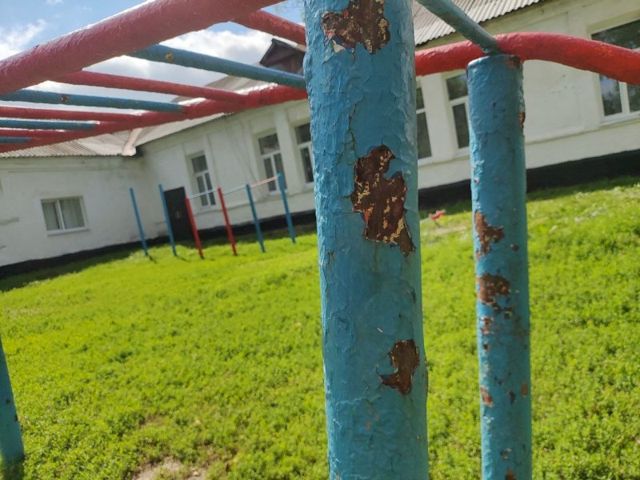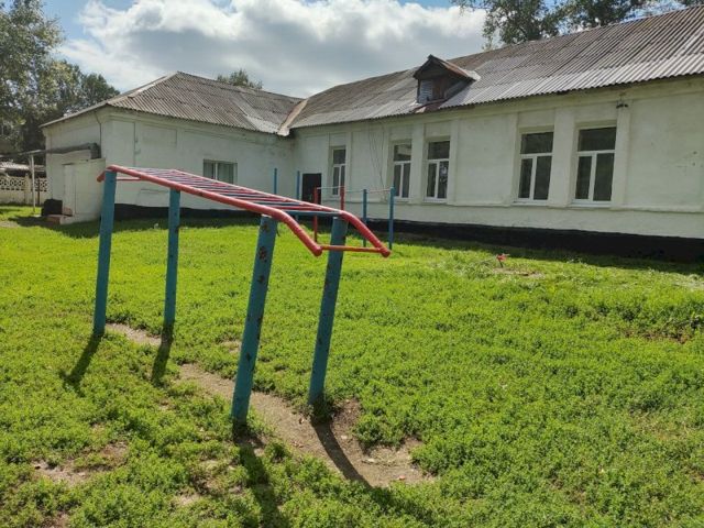 Пришкольная площадка не выглядит ухоженной - перила и лесенки начали ржаветь, от них шелушится краска. От времени спортивные снаряды окосели и стоят неровно, резинового покрытия на территории также нет - под ногами детей земля и трава. На площадке находится канализационный люк, который помечен красной лентой: раньше на нем стояла тренога, но, судя по всему, ее свалил ветер. Территория школы фактически не огорожена - низкий бетонный забор разбит во многих местах. В здании стоят новые пластиковые окна, однако, как рассказал ЕАН работник учреждения, их поставили на пожертвования местного мецената.