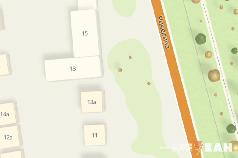 Отметим, в соответствии с приказом инспекции ОКН под защиту попадает не только сам дом, но и прилегающая к нему территория. В документе указаны координаты и есть схематичное изображение охраняемой зоны. Если наложить ее на более современную карту, окажется, что здание полностью в нее входит, но при этом разбито на разные адреса. Например, судя по координатам с geotree.ru, поврежденное крыло относится к Чичерина, 13. При этом участок все еще входит в охранную зону Чичерина, 15.