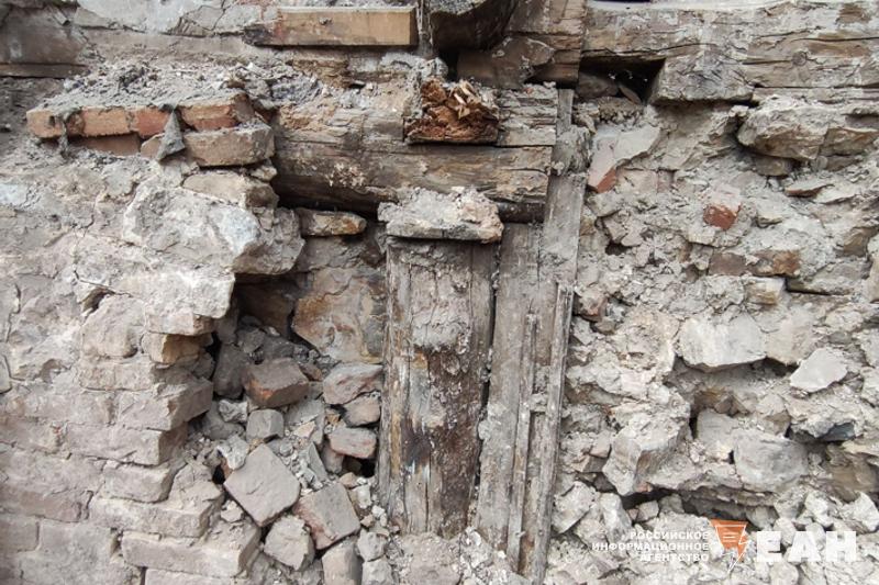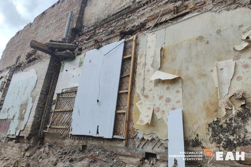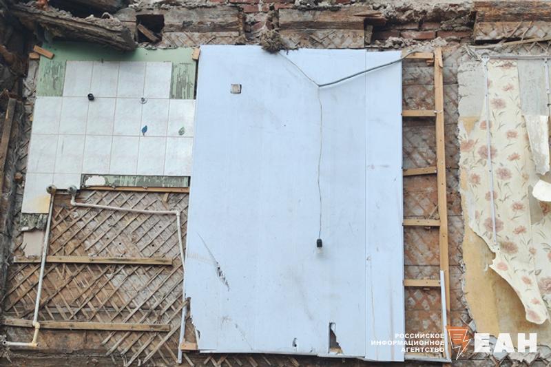 В августе начались работы по сносу соседнего здания - по Чичерина, 13. С тех пор у жителей объекта культурного наследия появились проблемы. Выяснилось, что стена у двух зданий общая. Рабочие побоялись убирать конструкцию до конца: от этого дом может обвалиться. Во время демонтажа кирпич начал осыпаться, появились щели. Оказалось, что местами перегородка и вовсе состоит из досок. В итоге все оставили как есть - смежную стену так не убрали до конца. Теперь на ней можно увидеть куски обоев и части интерьера квартир снесенного здания: болтается лампочка на проводе, висят куски обоев, местами заметна кафельная плитка.