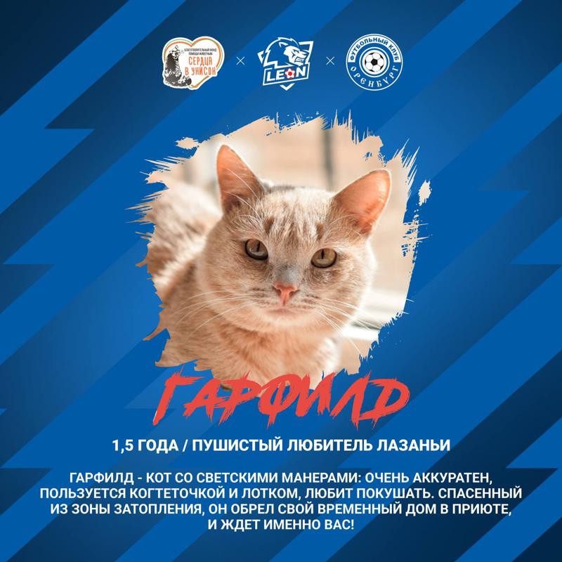 Футболисты выйдут на построение перед матчем в форме с принтом питомцев из приюта "Филимоша". Утверждается, что болельщики, забравшие любого кота в новый дом, получат эксклюзивные футболки с автографами игроков ФК "Оренбург".