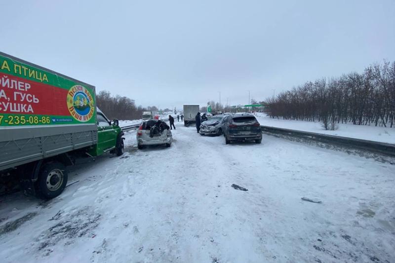 Федеральная трасса М-5 в Оренбургской области перекрыта из-за массовой аварии. Об этом сообщает УМВД по региону.