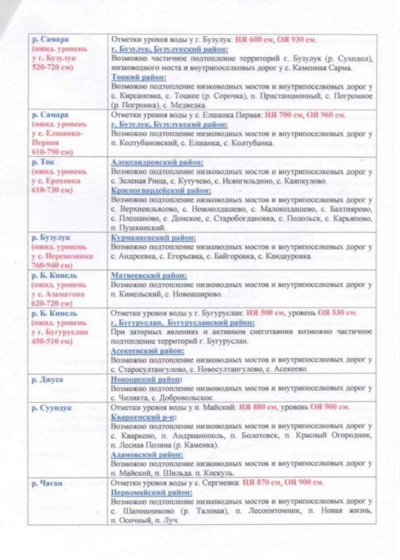 В перечень территорий, находящихся в зоне наибольшей опасности, попали Орск и Оренбург. В областном центре и прилегающему району большая вода вновь грозит микрорайонам Кузнечный, Форштадт, Весенний, Неженка, Овчинный городок, Ивановка, Дубовый плес, Зауральная роща и СНТ, которые находятся вдоль Урала и Сакмары. В Орске вода вновь угрожает части Старого города – поселкам Никель, Вокзальный и Первомайский.