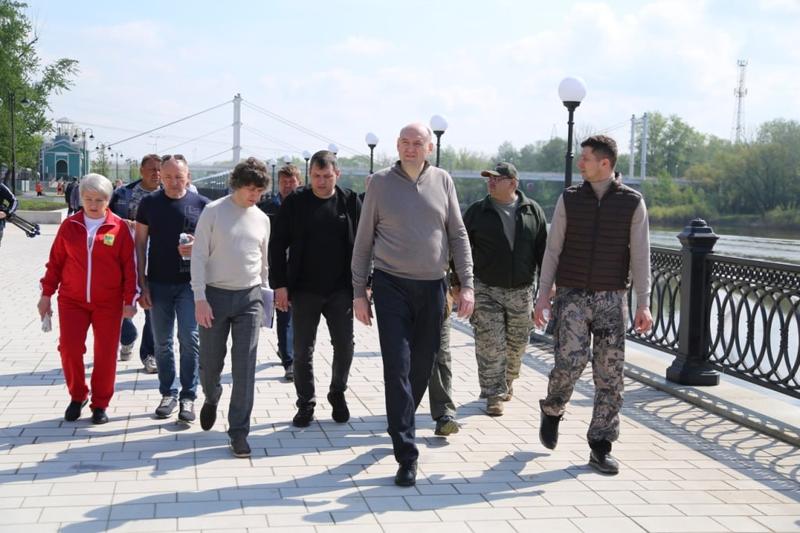 «Хорошая набережная с современными спортивными площадками, прогулочной зоной, железной дорогой. Тоже приду прогуляться со своей семьей», - сказал Солнцев.
