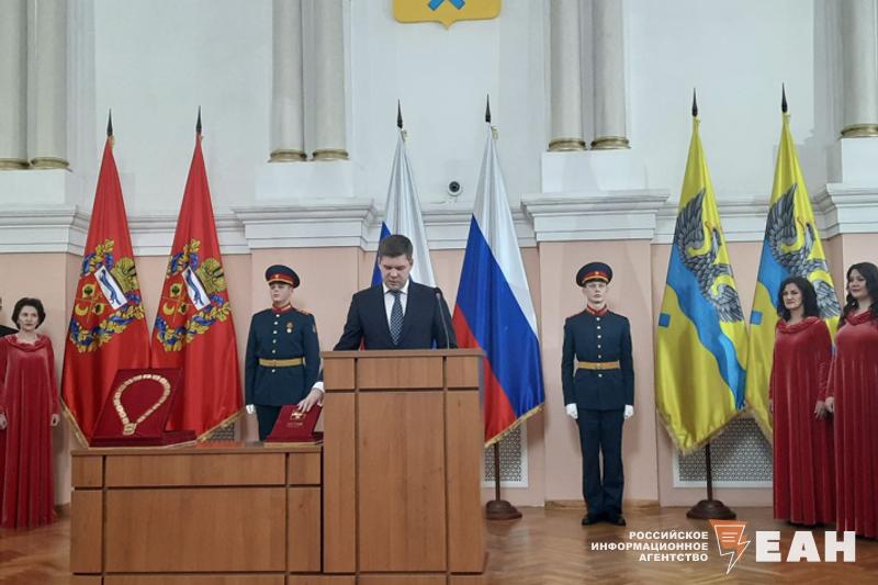 На инаугурации мэра поздравил губернатор Евгений Солнцев. «Перед вами стоят несколько острых задач, которые нам необходимо решить вместе. Во-первых, нужно навести порядок в жилищно-коммунальном хозяйстве. Оптимизировать работу общественного транспорта - это два.